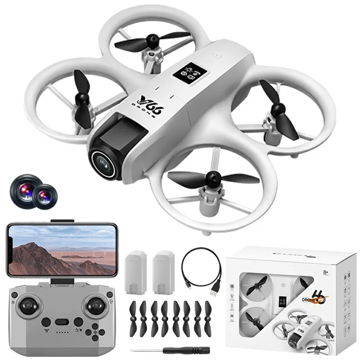 پهپاد **V66 HD Dual Camera RC Drone Optical Flow Obstacle Avoidance Quadcopter** یک گزینه عالی برای علاقهمندان به عکاسی هوایی و پروازهای خلاقانه است. در ادامه به مزایا و ویژگیهای برجسته این محصول میپردازیم: